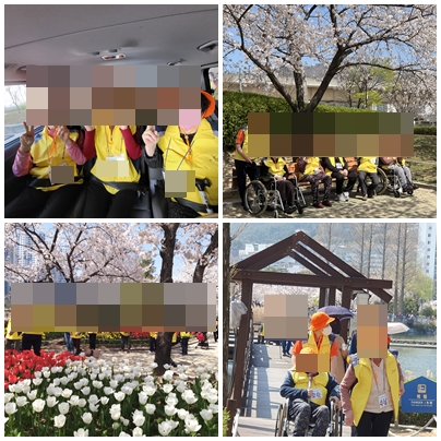 오늘은 3층 어르신들의 나무그늘 봄 나들이를 진행하였습니다. 오늘 봄 나들이 장소로는 대단지 아파트 가운데