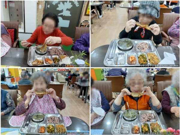 정성스럽게 준비한 한 끼 식사에 어르신들께서는 “굴비가 노릇하니 맛좋네~” 하시며 맛있게 드셨습니다.