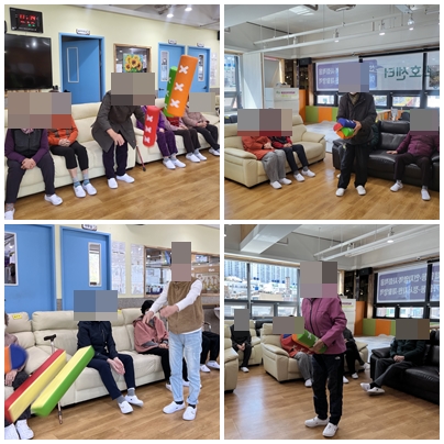 하나로 오늘은 나무그늘 어르신들끼리 팀을 나눠서 각 팀이 하나의 가족이다 생각하며 힘을 합쳐 윷을 던져 보았습