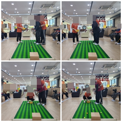 오늘 소개해드릴 신체 활동 프로그램은 골프퍼팅 게임입니다. 이 프로그램은 골프채로 공을 쳐서