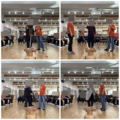 주며, 올바른 자세와 균형 감각을 키우는데 도움을 줍니다. 우리 어르신들 3점을 향해 열심히 화살을