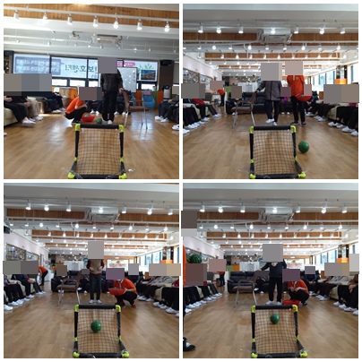 수박 공을 축구골대를 향해 뻥~ 하고 시원하게 차주시는 프로그램으로 하체근력 강화와