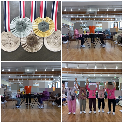 오늘 1등 2등 3등어르신들께는 파리올림픽을 함께 즐겨보자는 의미로 나무그늘 화폐와 금은동 목걸이를 걸어드리는 시상을 했습니다.