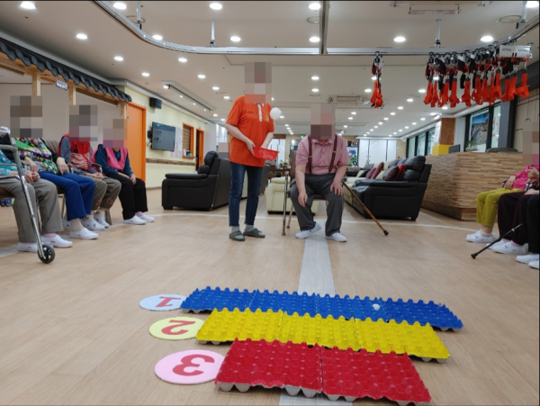 탁구공던지기는 점수가 부여된 계란판에 탁구공을 던져 부여된 점수를 합해서 계산을 해보는 활동으로,