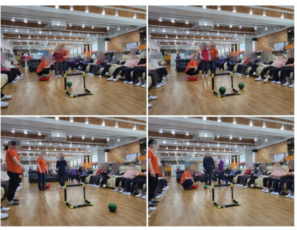 축구게임은 일정거리에 있는 골대에 공을 넣는 활동입니다.