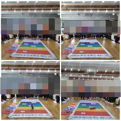 이 게임은 바닥에 놓여 있는 숫자판에 신발을 멀리 던져서 점수를 획득하는 활동으로, 대. 소근육 운동