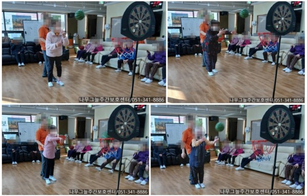 오늘은 어르신들과 탱탱볼 농구 게임을 통해 운동과 놀이를 동시에 즐기는 시간을 가졌습니다.