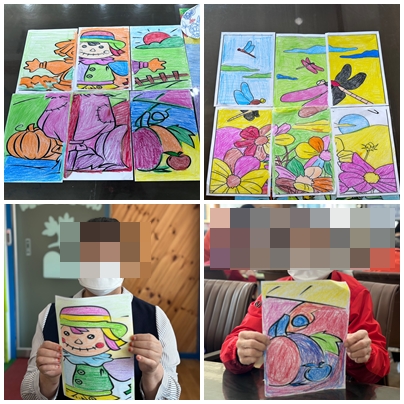 색칠할지 고민도 하시고 내가 칠한색이 다른 그림조각이랑 모여서 안 어울리면 어쩌지 하며 고민도 하시며 수업에 열중해 주셨습니다.