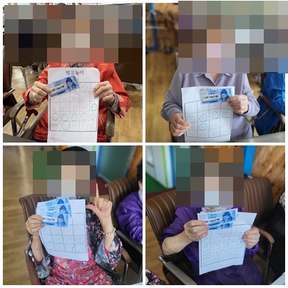 작성하시는 과정에서 기억력향상과 수 인지기능에 도움이 되며 사회자가 불러주는 숫자를 귀 기울여