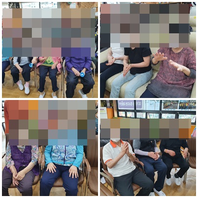 모이셔서 수업을 진행하였습니다. 목욕 후 나른해 하시는 어르신들게 활력을 드리고 자 강사님을 초빙하여