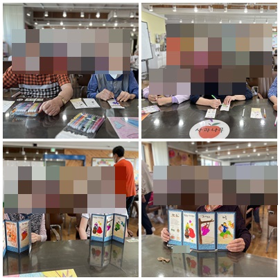 오늘 소개해드릴 인지활동 프로그램은 단오를 맞이하여 "단오병풍 만들기"입니다. 이 프로그램은 단오 그림이 프린트 되어진 워크북을 색칠하고