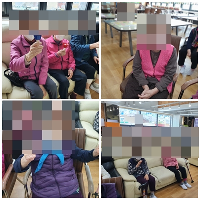 오늘은 흥겨운 트로트와 함께 개운하게 스트레칭을 한 후 저번주에 배우신 노래를 함께 불러보며 율동도 함께해보았습니다. 산넘어 남촌에는