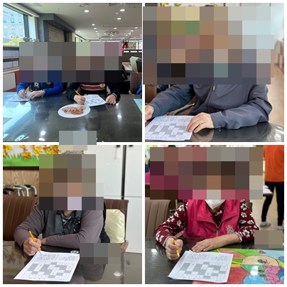 골똘히 고민하며 옆 어르신들과 상의도 하며 빈칸을 채워 나가셨습니다. 빈칸 없이 꽉 채운 문제지를 보시
