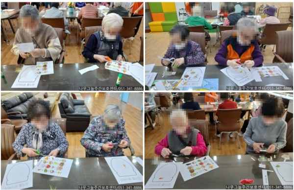 준비된 김장 재료 도안을 오려 김장독에 붙이며 각자 기억하고 계신 집안의 김장 재료를 표현해보셨습니다.