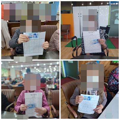 마다 귀를 쫑긋하시며 집중하셨습니다. 원하는 숫자가 나오면 앗싸 하고 크게 기뻐하시며 빙고시간을 즐겨주셨습니다