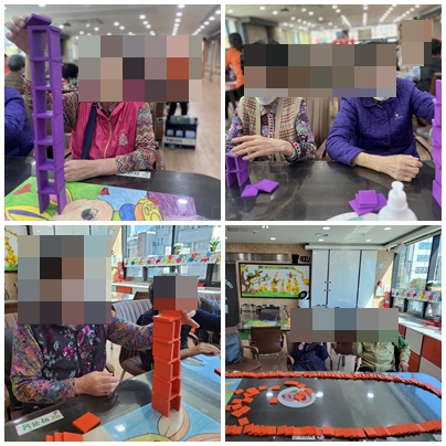 오늘 2층 오후 인지교구 프로그램 시간에는 도미노가 진행되었습니다. 도미노는 모두가 힘을 합쳐