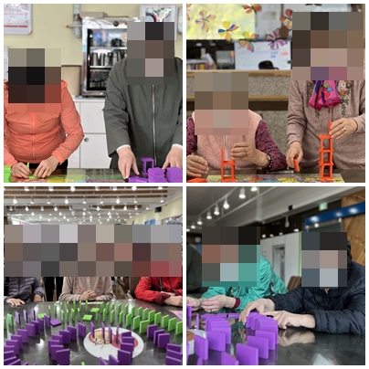완성해보았습니다. 완성된 도미노를 어르신들께서 시원하게 쓰러뜨리고 환호성을 지르며 스트레스도