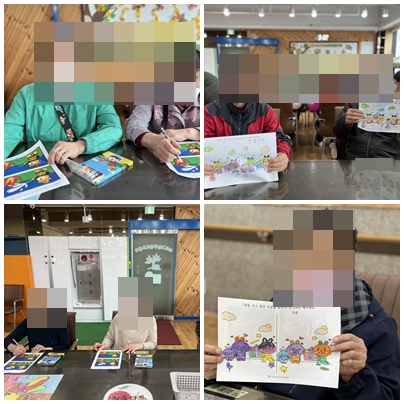 다른 부분에 동그라미도 치며 행복해하시고 모르는 부분은 옆 어르신들과 상의도