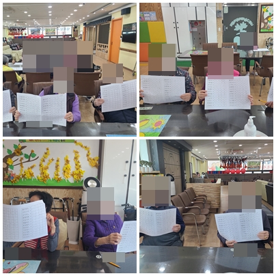 으시곤 곧 잘 풀어내셨습니다. 우리 어르신들 긴 시간 집중하시느라 힘드셨을텐데도 즐거워하시며 워크북을 풀어주셨습니다.