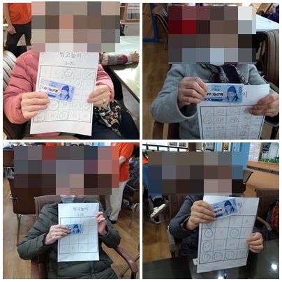 러주는 숫자를 듣고 맞는 숫자에 동그라미를 그려야하기 때문에 집중력 향상에도 좋습니다. 우리 어르신들은
