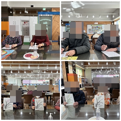 서예는 아주 좋은 활동입니다. 오늘 우리 어르신들은 간단한 사자성어를 써 보고 난까지 쳐
