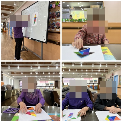 노래로 어르신들의 집중력을 올려드리고 주제에 맞춰 칠교놀이를 진행하였습니다.