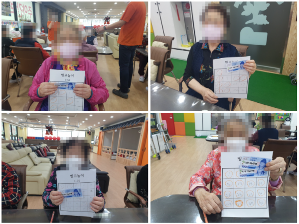 인지활동 - 빙고게임 페이지 정보 작성자 관리자 작성일22-04-27 17:59 조회80회 댓글0건 관련링크 이전글 다음글 목록 답변 본문 오늘은 인지활동프로그램으로 "빙고게임을 진행해보았습니다." 댓글목록 등록된 댓글이 없습니다. 이전글 다음글 목록 답변