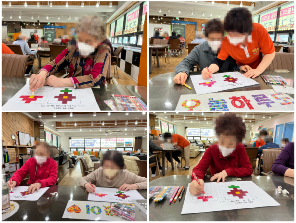 어르신들께서 곰곰히 생각해보시고 차근차근 색을 칠해보았답니다.