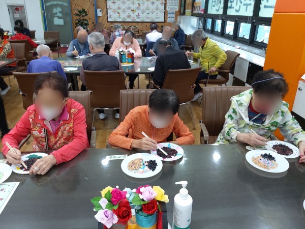 인지활동 프로그램으로 "콩고르기"를 해보았습니다.
