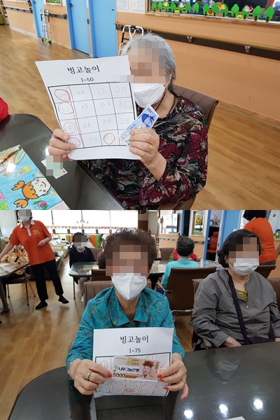 인지활동으로 어르신들과 '빙고게임'을 하였습니다
