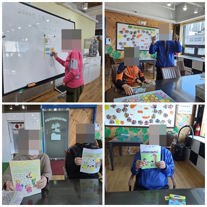 모내기 카드를 보며 이야기 나누고 뒷 장 그림을 색칠 해보셨습니다. 이 수업은 어르신들이 과거에 경험한