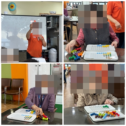선생님이 제시하는 모양판에 넣어보기도 하고 빈칸을 채워 보기도 하는 프로그램입니다. 이 프로그램은 치매예방,