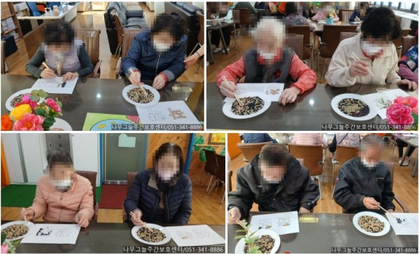 어르신들은 집중하며 콩의 모양과 색을 살펴보시고 조심스럽게 젓가락으로 콩을 옮겨보셨습니다.