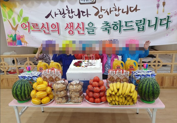 어르신들의 소감말씀도 한마디씩 들어 보고 다함께 생일 축하곡도 불러드렸습니다. 생신 잔치가 끝난 후