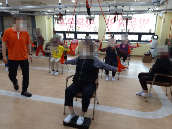 나무그늘에는 재활치료 프로그램으로 슬링운동을 실행하고 있습니다.