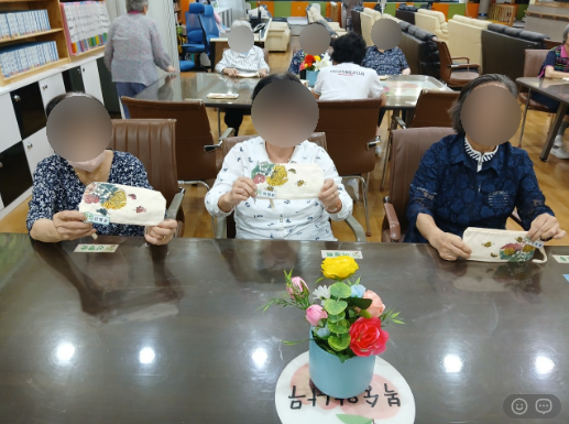 민화 그림이 그려진 파우치에 사인펜으로 색을 칠하며 각자만의 개성이 담긴 작품을 완성하셨습니다.