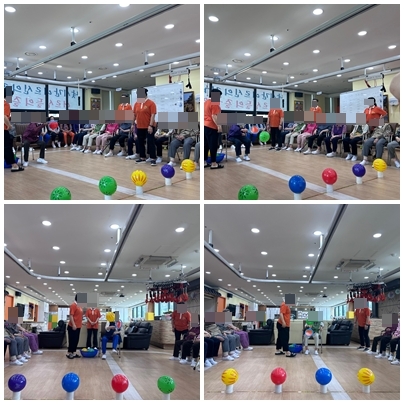 대근육 발달, 집중력 향상에 도움이 되는 프로그램입니다. 오늘 새로한 프로그램이어서 우리어르신들은 반짝반짝한 눈으로 선생님의