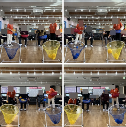 표시된 골대에 같은 색의 공을 던져 넣어보는 프로그램으로 어깨의 회전근과, 손기능을 강화시켜주는