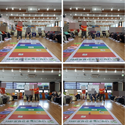 어르신들은 원하시는 곳에 공을 넣기 위해 한손 또는 두손으로 열심히 공을 굴려 주셨습니다.