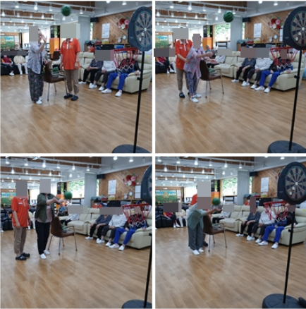 가벼운 수박공을 이용해 골대에 공을 넣는 활동을 통해 어르신들은 손과 팔을 움직이며 자연스럽게 대 근육과 소 근육을 강화하셨습니다.