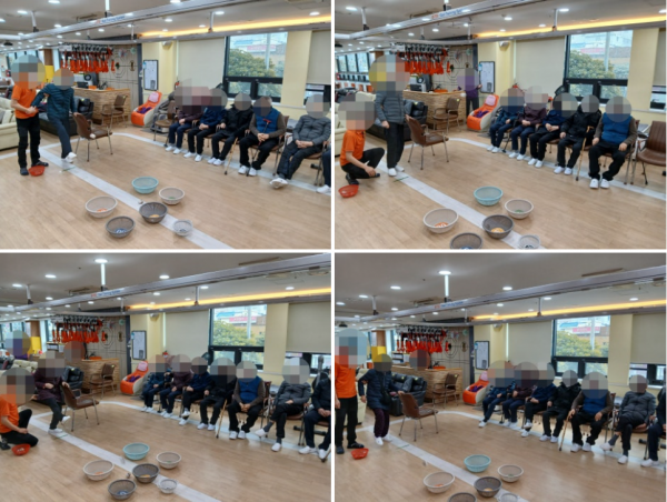 오늘 소개해드릴 신체활동은 “오자미 축구”입니다. 이 게임은 어르신들이 오자미를 발등에 얹은 후