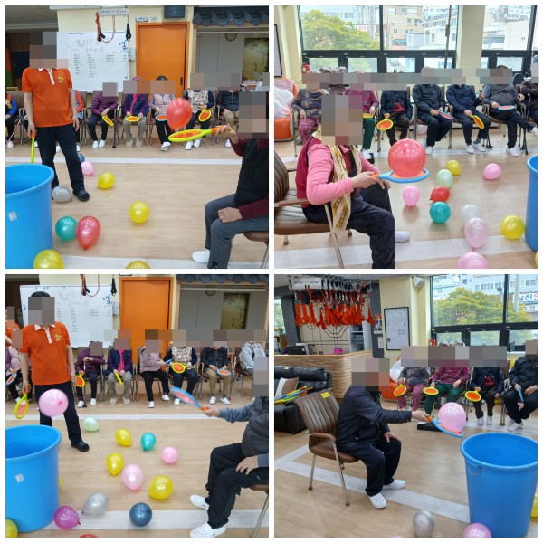 풍선이 통 안에 쏙 들어오면 “앗싸!”하고 환하게 웃으셨습니다.