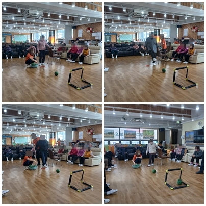수박 공을 이용해 어르신들과 함께 축구 시간을 가졌습니다.