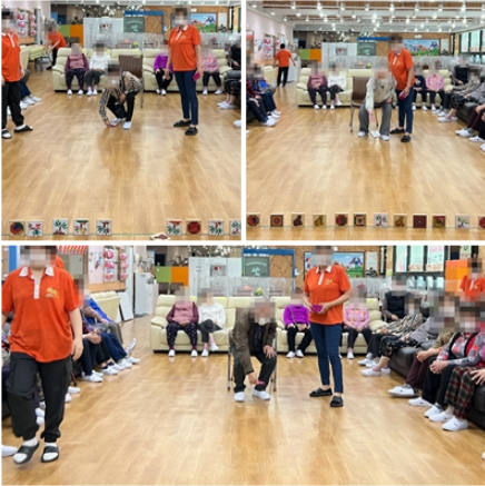 나란히 세워져 있는 많은 비석을 다른 비석을 던져서 많이 쓰러트리는 활동입니다