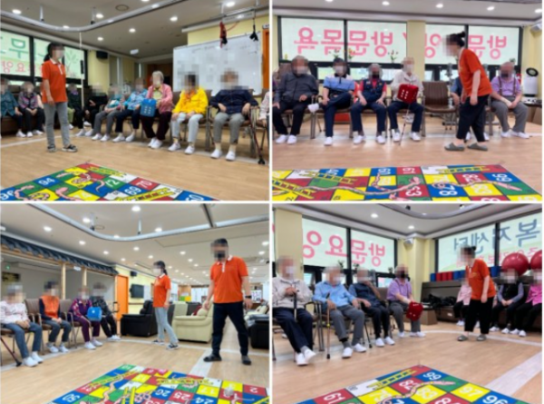 여러 명의 어르신들이 한 팀을 이뤄서 주사위를 굴려 마지막칸까지 도달하는 게임입니다.