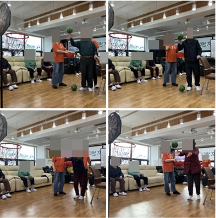 소개해드릴 신체활동 프로그램은 “농구게임”입니다. 농구게임은 가벼운 수박공을 사용해서 일정거리에 있는