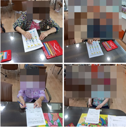 배워보는 시간이였습니다. 이 활동은 도형과 글자를 한번에 봐야하기 때문에 집중력, 단기인지기억 향상과 판단력 강화에 효과가 있는 활동입니다.