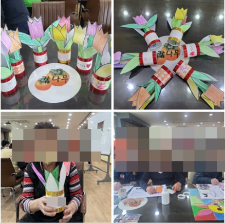 그램은 튤립을 생각하며 색칠하고 완성하는 과정에서 어르신들의 소근육 발달, 손과 머리의
