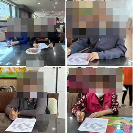골똘히 고민하며 옆 어르신들과 상의도 하며 빈칸을 채워 나가셨습니다. 빈칸 없이 꽉 채운 문제지를 보시
