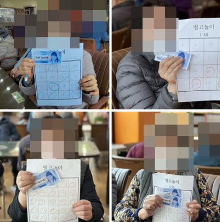 토요일 인지활동 프로그램으로 빙고 게임을 진행하였습니다. 빙고게임은 1차(1~50),